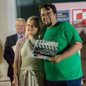 Recogen el premio Javier Rubio, director del corto y Teresa Soria Ruano, actriz.