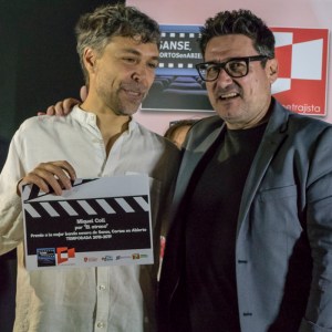 Recoge el premio Eduardo Ovejero, codirector del corto con el propio David Díaz