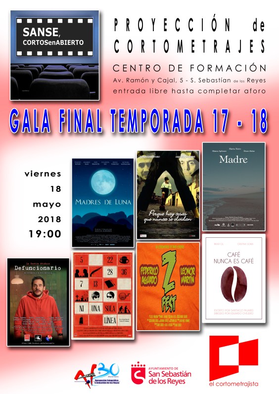 LOS MEJORES CORTOS DE LA TEMPORADA Y LA PROCLAMACIÓN DEL CORTOMETRAJE GANADOR DE LA TEMPORADA 2017-2018 DE SANSE CORTOS EN ABIERTO EN LA SESIÓN DEL 18 DE MAYO