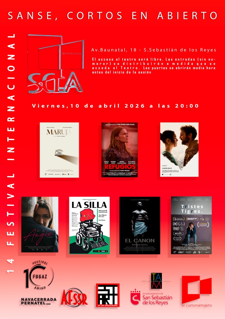NUEVA SESIÓN DEL FESTIVAL INTERNACIONAL SANSE CORTOS EN ABIERTO. SERÁ EL VIERNES DÍA 10 DE ABRIL EN EL TEATRO ADOLFO MARSILLACH DE SAN SEBASTIÁN DE LOS REYES.