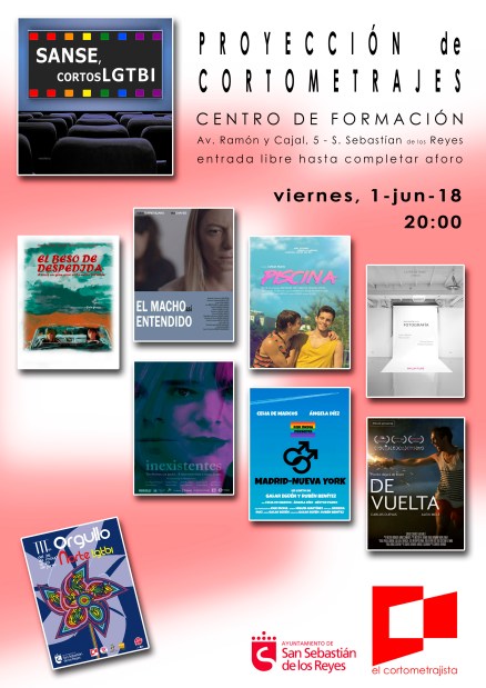 El Centro de Formación de San Sebastián de los Reyes en la Avda Ramón y Cajal, 5 acogerá una nueva proyección de cortometrajes. En esta ocasión, con motivo de la celebración del III Orgullo Norte LGTBI. Será el viernes día 1 de junio a partir de las 20:00.