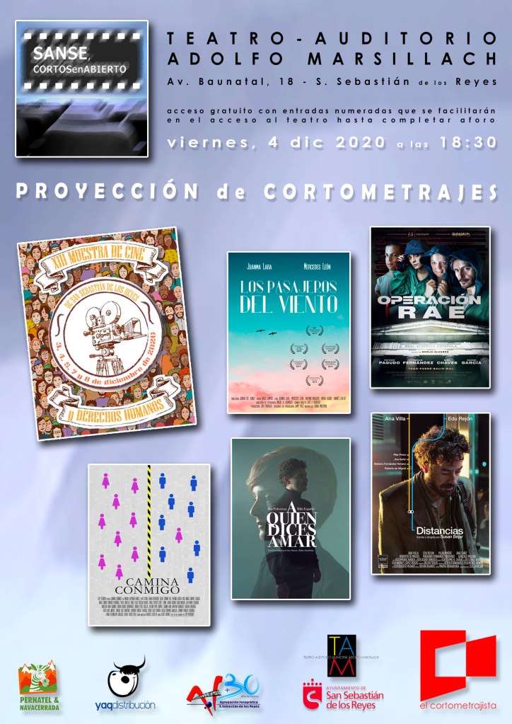 Adelantando una hora y media la habitual de inicio de sus sesiones, el viernes día 4 de diciembre a las 18:30, tendrá lugar una nueva sesión de Sanse Cortos en Abierto. En esta ocasión la sesión la configurarán cortometrajes de temática derechos humanos para así contribuir a la edición de 2020 de la Muestra de Cine y Derechos Humanos de San Sebastián de los Reyes.