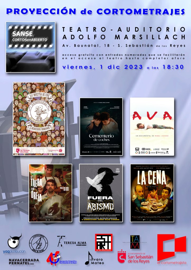 Adelantando una hora y media la hora habitual de inicio de sus sesiones, el viernes día 1 de diciembre a las 18:30, tendrá lugar una nueva sesión de Sanse Cortos en Abierto. En esta ocasión la sesión la configurarán cortometrajes de temática derechos humanos para así contribuir a la edición de 2023 de la Muestra de Cine y Derechos Humanos de San Sebastián de los Reyes.